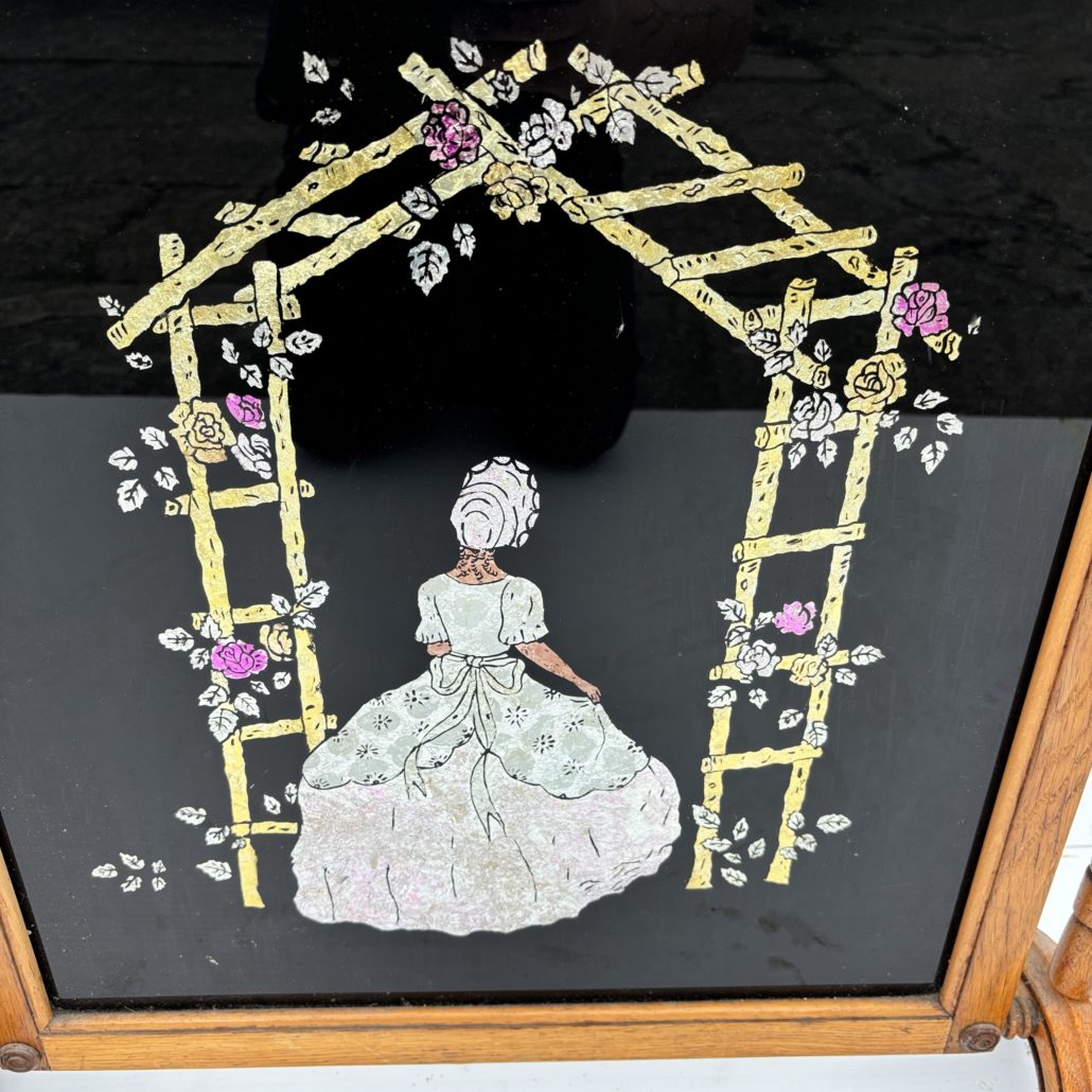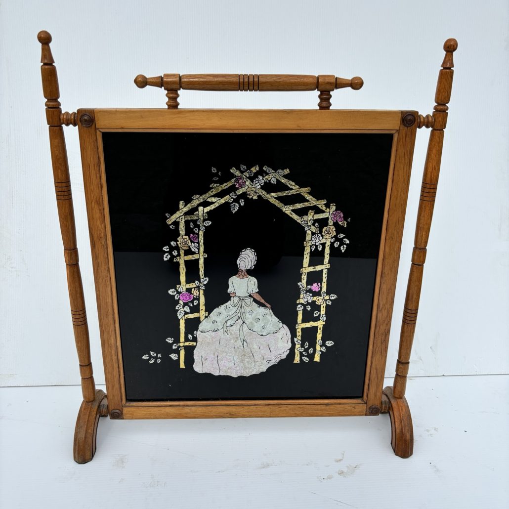 Vintage decorative fire screen dating from the 1970s. In good condition measuring 73cm tall 63cm wide.
