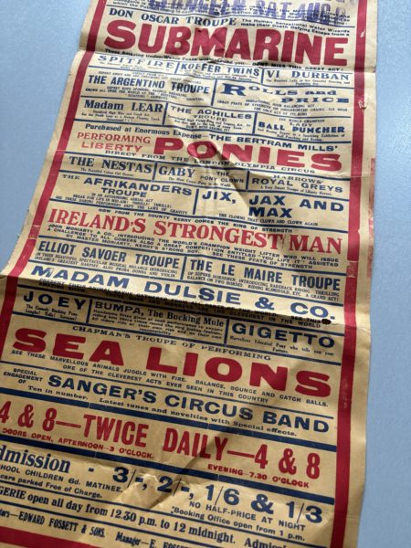 Original one page advertisement for Edward Fossett &Sons Circus which Took place In Clongeen in 1942.