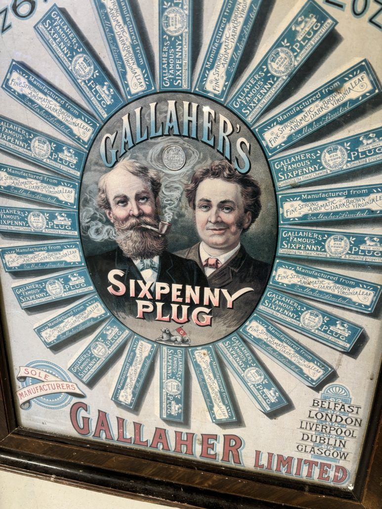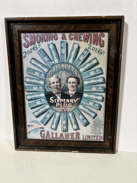 Reproduction bar advertising in an old frame, in good condition.