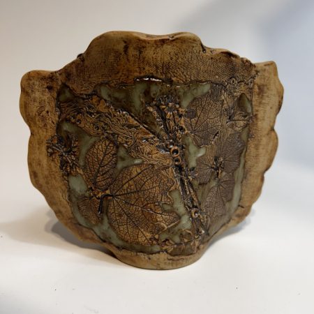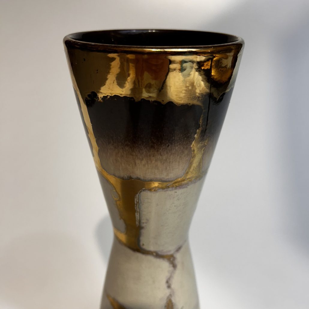 Vintage 1970’s Jasba Keramit corset vase with a colourful abstract decor.