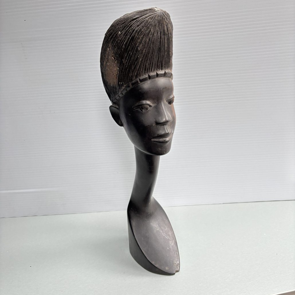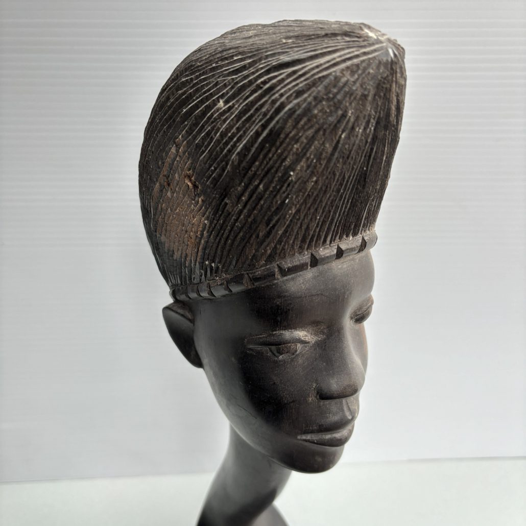 Stunning work of African art meticulously crafted from rare ebony wood ranging from jet black to dark brown.